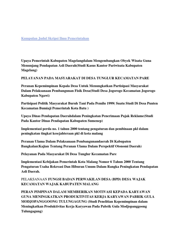 Kumpulan Judul Skripsi Ilmu Pemerintahan