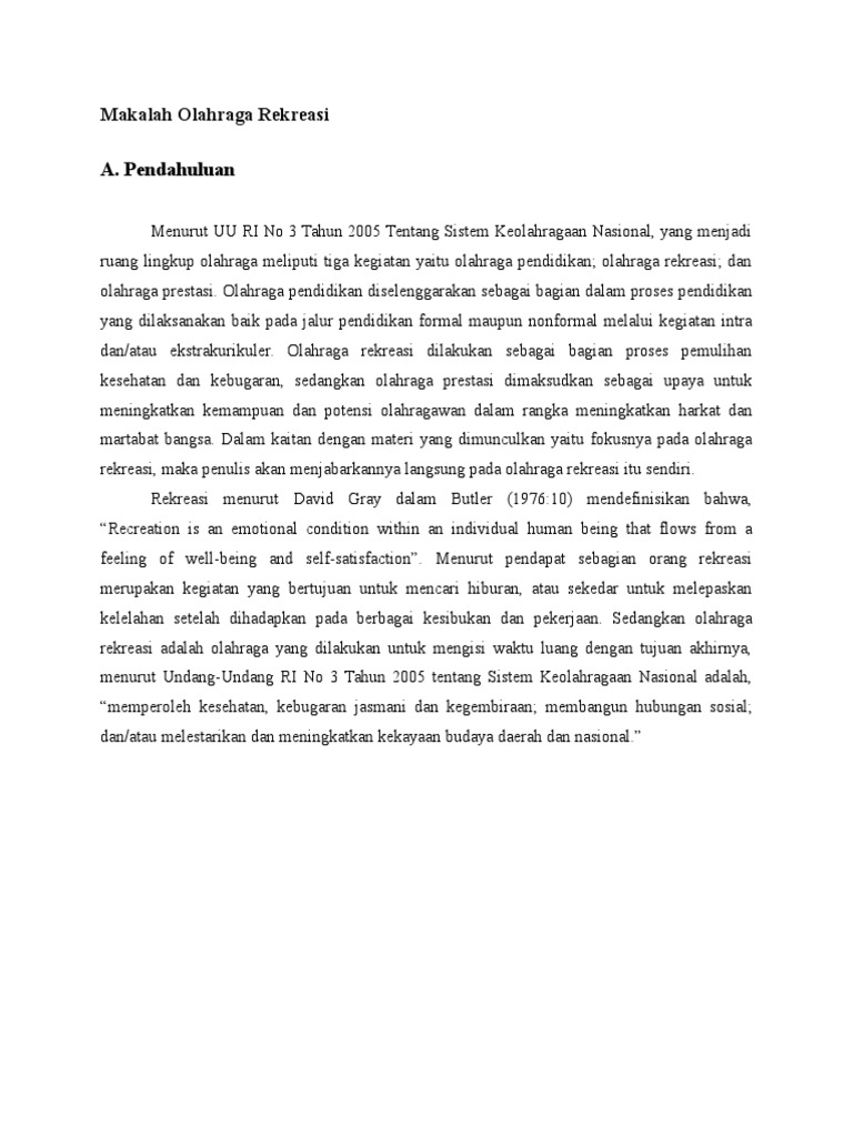 Contoh makalah tentang olahraga rekreasi. Berenang ialah gerakan sewaktu bergerak di air. Namun demikian semenjak Undang-Undang No. Outbound merupakan salah satu contoh permaianan olahraga rekreasi.