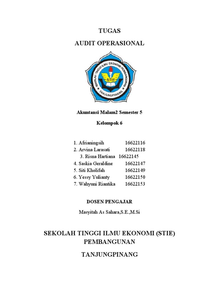 Tugas akhir laporan audit Audit Kinerja Manajemen 1. AUDITSesuai dengan penugasan yang kami terima audit yang kami lakukan hanya meliputi masalah Keterlambatan Produksi PT. LAPORAN HASIL AUDIT MANAJEMEN PT INDOJEWEL Yogyakarta 24 April 2016 No.