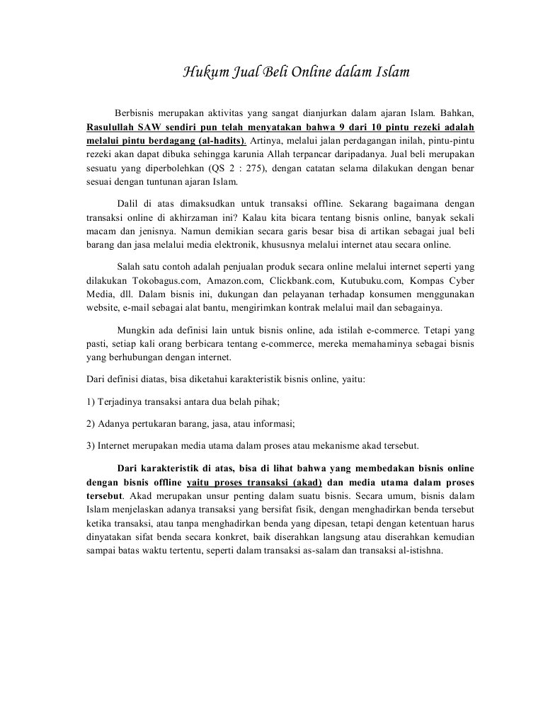 Ahwalu Sakhsiyyah AS Jurusan. Sehingga pengetahuan pembaca akan hukum jual. Dan bagaimanakah jual beli online yang diperbolehkan halal dalam perspektif Islam.